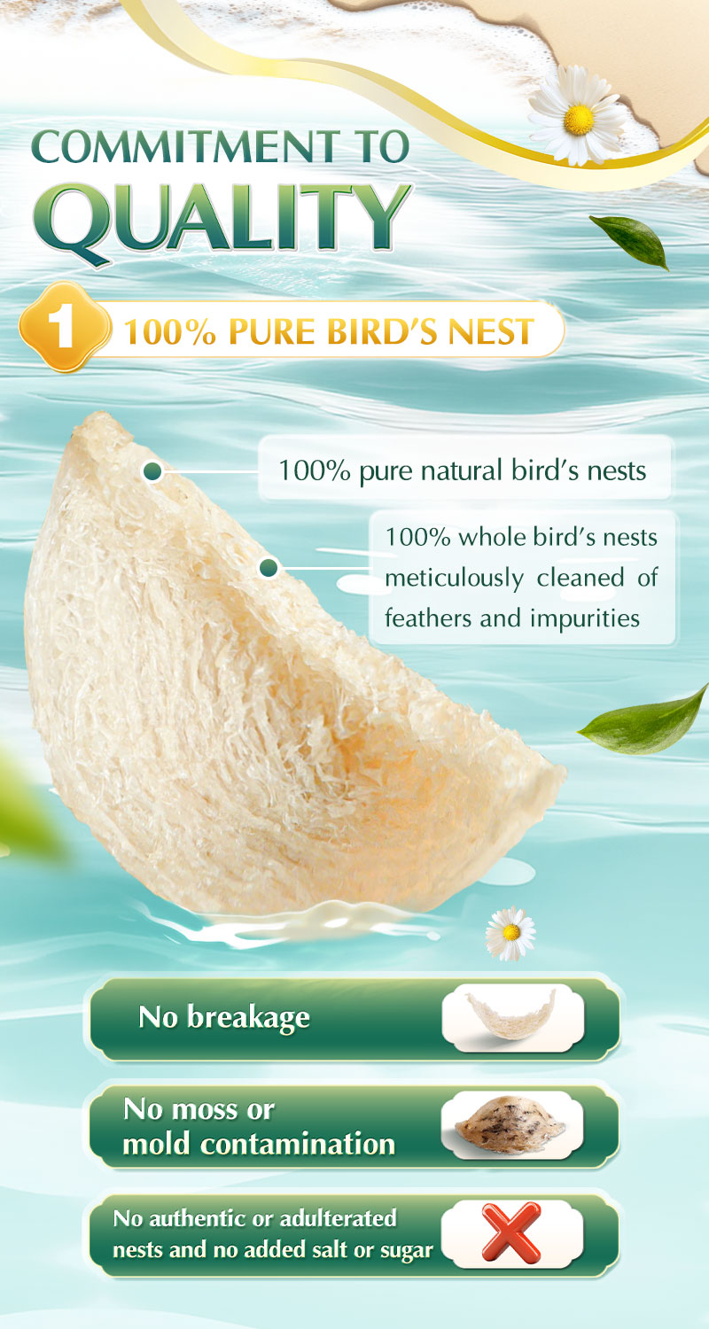 - 100% guarantee: no bleaching agents, no artificial bird's nest, no adulterated nest